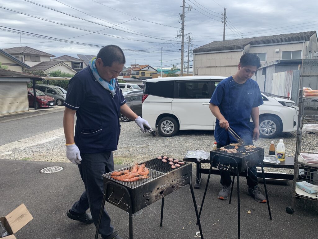 焼きたてのお肉や野菜、エビなど、香ばしい匂いが広がる中、